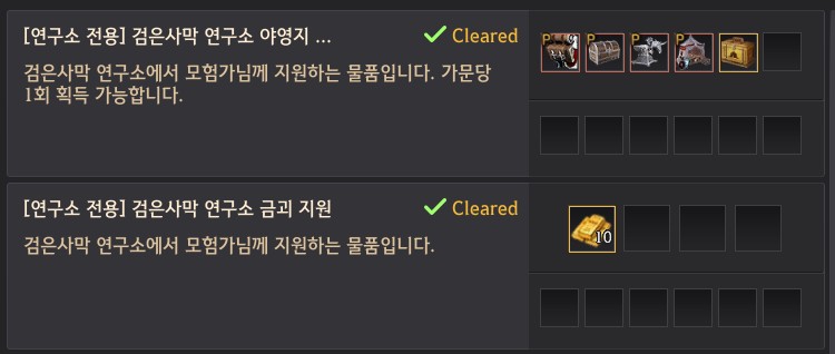依頼タイプを全体にしてから闇の精霊を呼び、「Quest」→「Event」→「[연구소] 흑정령의 선물 : 의상」で依頼を受けましょう。