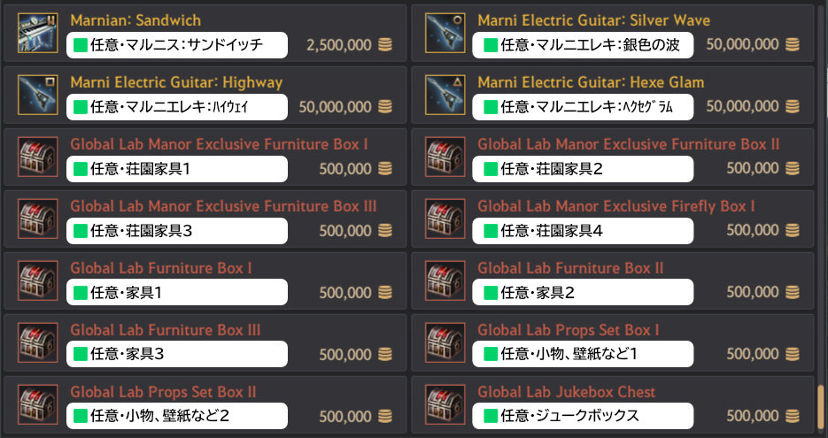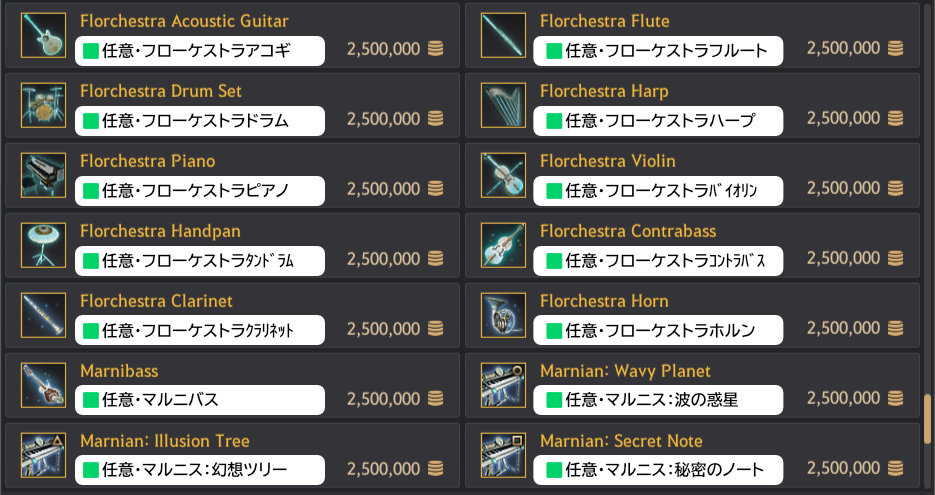 同じく楽器で演奏したい場合は購入。荘園は前提クエストの進行が必要。