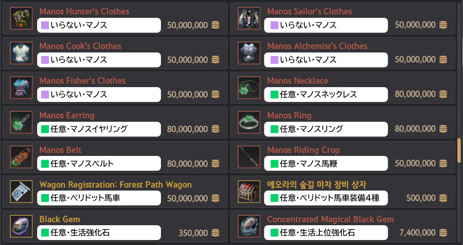 今回は黒い砂漠のテストサーバー「グローバルラボ」のテスト準備のために、買う必要のある商品を紹介しました。
