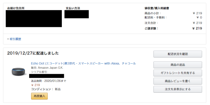 そんなことはどうでもよくて、Amazon Echo Dotが破格の999円(厳密にはAmazon Music Unlimited 780円との抱き合わせなので実質219円)だったので、迷わず購入してしまいました。