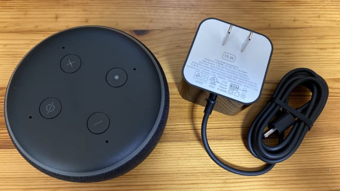 Echo Dotの裏側を見ると電源とオーディオというシンプル構成。